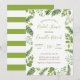 Invitation moderne avec un thème botanique avec fougères et feuilles. Un design aéré pour une mariée chic. Ce thème est parfait pour un événement avec un thème jardin, botanique, été ou bio. Les lettres sont élégantes avec une touche ludique. Le dos a un motif de rayures dans la coordination verte. C'est un design élégant et tendance qui plaira à la mariée avec un grand sens du style.