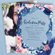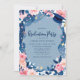 Célébrez la réussite du diplômé avec cette élégante invitation à la fête de remise des diplômes. Le design est un magnifique mélange d'aquarelles bleu marine et rose floral, créant une atmosphère sophistiquée et festive. Un éparpillement capricieux d'étoiles complète la police de caractères de script moderne, encadrant les détails de l'événement. Personnalisez ce modèle avec le nom, la date, l'emplacement et les spécifications RSVP.