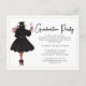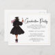 Invitation de la partie de graduation Décontractée moderne - Typographie de script moderne avec un design minimal. Une belle diplômée tient son diplôme et un bouquet de roses roses. La carte est accentuée avec une fine bordure en or. Graduation Party Invitation fait partie d'une collection.