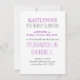 Invitations de gymnaste personnalisées avec des rayures de chevrons violets et gris et du texte personnalisé.