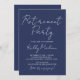 L'invitation de la fête de retraite bleu marine associée à un script blanc moderne pour un look intemporel et classique!