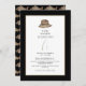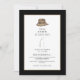 Partis Invitation de la partie de retraite de Pêche. La typographie au devant. Casquette, pôle de pêche et poisson.