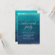 Cette invitation à la retraite de 3,5 po x 5 po, élégante et festive, présente des confettis en argent (feuille simulée) avec des lettres assorties qui disent "Parti de la retraite" dans une belle police de caractères. L'arrière - plan est une image spectaculaire bleu et turquoise d'ombre d'aquarelle, qui pourrait ressembler à la plage ou nautique — ou tout simplement élégant. Customisez l'invitation avec vos propres informations - une façon simple et simple de créer une carte personnalisée. Le côté arrière de la carte est doté d'un motif argenté assorti - encore une fois avec l'arrière - plan tendance bleu/vert. Une façon simple et élégante pour les clients invitations de célébrer une retraite.
