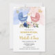Genre Reveal Party Invitation avec chariots bébé et fleurs roses et bleues cloutées de mousseux L'élégante disposition de texte de style moderne est facile à personnaliser en utilisant la modèle fournie. Pour effectuer des modifications avancées, sélectionnez l'option "Cliquez pour customiser plus loin".