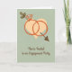 Invitation de la partie d'engagement avec un coeur, flèche et anneaux dans une couleur beige et rouille sur un arrière - plan vert clair. Merci à Hungryjpeg pour certains des éléments du design.