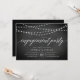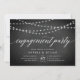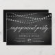 Nos invitations rustiques et élégantes de fiançailles en noir et blanc présentent un arrière - plan de tableau noir avec des cordes de lumières blanches sur le dessus, et "fiançailles" dans la typographie de script de calligraphie chic. Personnalisez avec vos détails de célébration fiançailles en dessous en blanc.