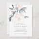 Invitations élégantes et subtiles de fiançailles florales, avec des fleurs roses claires et pâles et des feuillages doucement colorés. Personnalisez avec les détails de votre fiançailles en lettres grises.
