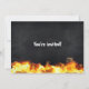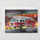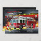 Cette invitation unique présente un vrai camion de pompiers et un équipement de pompier, contre un arrière - plan fougueux.