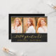 carte photo de collage manuscrit invitant votre famille et vos amis à la fête de remise de diplômes de votre fille. Invitation de la Simple Collage Parties scintillant Graduation Party pour 2014. Design par Elke Clarke © Visitez notre boutique www.zazzle.com/monogramgallery* pour plus de design et de styles. Une simple typographie en feuille d'or manuscrite de texte de police de script écrit superpose sur un arrière - plan de parties scintillant noir (effet photo imprimé) avec les mots "Graduate 2014" avec une conception de trois collages photo. Remplacez les photos par les vôtres. Couleurs noir et or.
