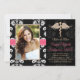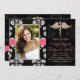 Ajoutez votre photo ou votre photo préférée à ces annonces formelles et élégantes de diplôme d'études dentaires à damas floral noir et blanc et à des invitations avec un seul serpent d'or caduceus et un ruban piqué rose fuchsia pour le dentiste diplômé. Customisez-le pour dire ce que vous voulez sur le dos et devant ces annonces de diplôme de fin d'études supérieures en dentisterie et les invitations. Oeuvre © Chrissy H. Studios, LLC. Tous droits réservés.