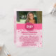 Ce invitation de la fête de remise de diplômes a une bordure rose grunge et un cercle avec l'année du diplômé imprimé dans une police grungy blanche. Le sommet du invitation 5x7 a un endroit où vous pouvez customiser votre photo personnelle. Dans la partie inférieure, vous pouvez facilement personnaliser vos informations de fête. Le texte en bas est écrit dans une police de cool rose-chaud.