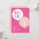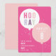 Cette invitation anniversaire de enfant moderne comprend un bouquet de ballons avec un style festif de type HOORAY rose et violet. Le type personnalisable en blanc et détails d'âge à l'intérieur du ballon rend amusant, tout en étant moderne et frais. La palette de couleurs rose et violet la rend parfaite pour une fête d'anniversaire pour filles. Coordination de l'arrière-plan couleur. D'autres objets de fête, comme les timbres, les notes de remerciement et la décoration de fête se trouvent dans les collections de bouquets de ballon de Stacey Meacham.