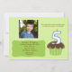 Cutie Cupcake invitation en vert avec un bleu "5" dans un cupcake au chocolat. Ajoutez une photo et une personnaliser pour votre journée parfaite !