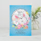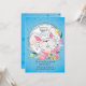 Cette invitation de fête de Pâques comporte un lapin blanc avec un arrière - plan ressort-floral et les oeufs de pâques décorés sur un fond bleu-tacheté.