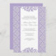 Cette invitation de mariage classique et élégante est créée dans un damas de lavande. Cette faire-part de mariage est parfaite pour un mariage formel. Les correspondances sauvegardent les cartes de date, la réponse, la réception, la direction et de remerciement sont également disponibles. Conception par Mujka