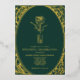 Ce luxueux faire-part de mariage baroque vert émeraude allie romantisme et sophistication, offrant une option élégante et unique pour les couples avec une vision chic et romantique. Les impressionnants véritables accents de feuille d'or apportent un sentiment d'opulence, créant un beau contraste sur le fond vert de la sauge profonde. De délicats roses dessinés à la main et des lettres gracieuses apportent une touche personnelle et artistique tout en préservant une esthétique ancienne et ornée. Idéal pour les couples qui souhaitent insuffler leur journée spéciale avec à la fois sophistication et une touche de style non conventionnel, cette invitation donne le ton parfait pour une célébration inoubliable et enchanteresse.