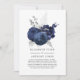 Invitation de mariage avec liste d'invités réduite à fleurs bleues marine et argentées avec une typographie élégante personnalisable selon les spécificités de votre événement. En ces temps incertains, il peut arriver que vous deviez organiser un mariage plus intime que prévu initialement. Cette carte d'annonce vous évitera l'embarras et vous soulagera l'esprit ! Vous pouvez également offrir la possibilité de se joindre à vous pour une cérémonie virtuelle.