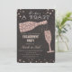 Invitation de fête de dîner de fiançailles avec verre à vin diamant or rose et tableau noir à la craie avec confettis