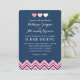 Invitation de mariage bleu marine et rose chevron