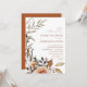 Invitation de mariage bohème d'automne avec des teintes automnales avec des roses ambre et de la verdure d'automne.