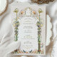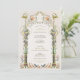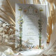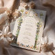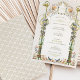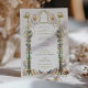 Cette invitation est une ode romantique à l'amour de l'ère victorienne pour les illustrations botaniques complexes et les motifs ornés du jardin. Une symphonie de fleurs, dans des teintes allant de la lavande délicate à la violette profonde, grimpe sur un piédestal classique, tandis que des oiseaux capricieux dans les teintes bleu ciel et brun terre grace la scène. Chaque détail est encadré de touches dorées, alliant l'élégance du passé à une sensibilité moderne. L'inversion de l'invitation présente un or sophistiqué sur motif géométrique crème, incarnant l'affinité victorienne pour des motifs complexes et répétitifs. Cette magnifique création donne le ton à un mariage à la fois d'inspiration historique et d'actualité.