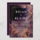 Célébrez votre amour sous les étoiles avec cette enchanteresse Invitation de mariage de jardin céleste. Encadré par un feuillage lumineux aux teintes chaudes de prune, d'or et de rougeur, ce design onirique évoque la magie d'une forêt étoilée. Au coeur se trouve une toile cosmique de constellations scintillantes, créant un mélange captivant de nature et de ciel nocturne, parfait pour une célébration inoubliable. Idéale pour les mariages du soir, les thèmes célestes ou d'astrologie, les cérémonies d'automne ou les boisés, cette invitation offre un équilibre sophistiqué d'élégance et de fantaisie. La disposition centrale permet de personnaliser les détails de l'événement tandis que la bordure éthérée donne un impact visuel qui se sent à la fois moderne et intemporel. Que vous soyez l’hôte d’une cérémonie romantique en plein air, d’une soirée de stargazer ou d’une réception inspirée du conte de fées, ce design vous donnera le ton parfait. Il fonctionne également très bien pour enregistrer les cartes à jour, les invitations aux parties de fiançailles ou les annonces de renouvellement de voeux.