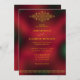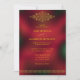 Cette invitation de mariage élégante et stylée présente des éléments graphiques dans un style arabe/indien. Elle est entièrement personnalisable, avec des graphiques et du texte en or et un fond flou rouge et noir.