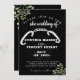 Invitation de mariage élégante et douce noire avec feuilles d'eucalyptus