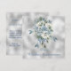 Une invitation de mariage et d'anniversaire de mariage à fleurs bleu poussiéreux sur fond argenté.