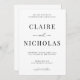 Une invitation à un mariage moderne et élégante présente un design minimaliste noir et blanc. Personnalisez avec vos détails de mariage avec le modèle facile à éditer avec une police de script élégante et une police serif classe. Choisissez entre "réception à suivre" ou "dîner et danser à suivre" au bas de l'invitation. Découvrez les objets correspondants dans la collection "Modern Elegant".