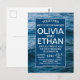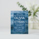 Cette invitation moderne de couleur bleu marine nautique est parfaite pour une croisière ou une fête de fiançailles sur la plage, une soirée après mariage, une retraite, une remise de diplôme ou tout événement heureux. Le design simple présente un beau paysage marin, des vagues, des animaux marins et des récifs colorés.