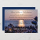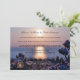 Une invitation de mariage ou de fête après-mariage présentant une scène côtière romantique au coucher du soleil avec une lanterne festive aux lumières scintillantes. Au dos, il y a un espace pour votre propre photo. Idéal pour une réception seule ou une célébration après le mariage.