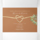 Élégante, moderne, bohème, invitation de mariage pliable en terre cuite avec feuillage aquarelle, cœur de corde dorée simple et photo personnalisée du couple au dos. Ajoutez votre photo, détails du mariage et RSVP.
