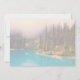 Une invitation de mariage rustique avec une photographie du paysage du Nord du Canada en toile de fond. Un lac de couleur turquoise avec une forêt de pins à l'arrière-plan et un ciel brumeux et embrumé lui donnant une qualité magique et mystique.
