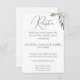 Belle et simple invitation à la réception de mariage, avec un élégant design feuille vert et fleurs blanches.