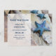 Cette annonce de mariage à thème de plage comporte une photo d'étoiles de mer artistiques sur un fond de rochers. C'est un excellent choix pour les mariages à thème de plage et de destination. ~