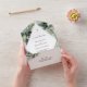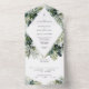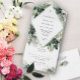 Simplifiez votre papeterie mariage avec cette invitation tropicale tout-en-un. Doté de feuilles botaniques luxuriants, il est parfait pour un mariage de destination. Ce design combine tous vos détails mariages en une belle pièce cohésive.