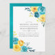 Invitation de mariage turquoise et jaune - sarcelle et citron aquarelle florale avec des accents de corail avec des fleurs et du feuillage aquarelle.