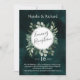 Bouquet de verdure, une riche et luxuriante invitation de mariage sombre de verdure pour une suite distinctive qui pourrait être festive ou estivale selon les enveloppes et les accessoires. Vert sauge, émeraude foncé et fond blanc. Une quantité parfaite de charme rustique et de botaniques élégantes.