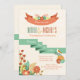 Une invitation charmante aux couleurs chaudes de l'automne avec un swag, bandeau plié de ruban, un arrangement de fleurs et un oiseau perché sur une feuille. Une invitation polyvalente à toute célébration d'automne..
