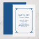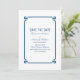 Annonce de mise en conserve simple et minimaliste Deco Chic avec une bordure ornementale art déco bleu foncé moderne. Cette invitation de mise en conserve élégante et classique est facile à personnaliser avec vos détails de mariage. Trouvez plus d'options de personnalisation en cliquant sur Personnaliser.