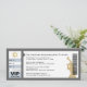 Qui est prêt à basculer le bema ? Il est. La visite vient à la ville. Faites-ainsi lui une étoile et sa barre Mitzvah un événement pour se rappeler. Cette invitation est dénommée juste comme un billet de concert. Le bas-côté, la rangée et le siège correspondent à la date d'événement pour un flourish supplémentaire. Une étoile de David ancre en haut à gauche et l'accès de VIP est décoré sur le fond. Une silhouette - représentant votre fils - des prises un microphone et a son poing dans le ciel, activant le morceau. Plus code barres traditionnel accomplit le regard. Le dos du billet accentue le "logo de visite" et l'initiale de votre fils est avant et centrale. Vous pouvez customiser toute les information imprimée avec le nom de votre fils et la date d'événement… complètent juste les champs !)