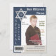 Cette invitation inspirée élégante de Mitzvah de barre de couverture de magazine pour un jeune homme s'appelant au Torah a une étoile de David argentée là-dessus, avec une palette de couleurs masculine dans les nuances du bleu, du taupe, et du blanc. Elle a un modèle photo pour télécharger votre propre photo numérique à, avec des zones de texte pour que vous customisiez la manière que vous voulez. On lui montre ici sur le papier de base, mais regarderait extra gentil sur le papier métallique de glace. Si vous avez besoin de n'importe quelle aide, envoyez svp niteowlstudio@gmail.com.