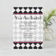 Une invitation présentant un fond argyllé noir et blanc avec une garniture rose vif. Le côté opposé présente un cadre circulaire rose assorti avec le texte "Vous êtes invité". Personnalisez le texte avec les détails de votre occasion.