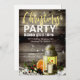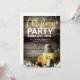 La lanterne brillante et les lampes à cordes sur l'arrière - plan en bois de grange grise créent un cadre chaleureux et cosy sur cette invitation festive de Noël.