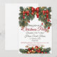 Notre carte d'invitation reflète l'esprit de cette saison festive. Elle est ornée d'une image d'ornement de Noël classique, représentant une branche de Noël magnifiquement décorée en haut. La branche est embellie de bulles rouges qui ajoutent une touche de charme festif. Au bas de la carte, vous trouverez une autre branche de sapin de Noël, ornée de lumières scintillantes et de décorations, ce qui ajoute à l'ambiance festive générale.