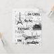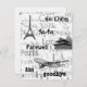 Une invitation de partie d'adieu faite en noir et blanc, avec les noms de grandes villes et personnaliser de l'agrafe art. d'amusement le texte pour adapter à votre partie a besoin.