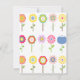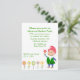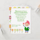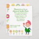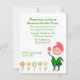 Invitation extérieure colorée de partie, avec des graphiques des fleurs assez petites, à travers le fond, et un gnome heureux de jardin, sur le bon fond. Personnalisez le texte vert pour votre événement.