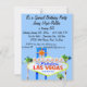 Invitations de partie de Las Vegas d'amusement avec un arrière - plan assez bleu, montré ici pour les cinquantième fêtes d'anniversaire. Une conception colorée et d'amusement.