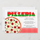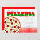 Notre invitation de partie de pizza de pizzeria rendra chacun affamé pour un tarte de pizza ! Les caractéristiques de conception le mot "pizzeria" en rouge et vert à côté d'une nappe checkered rouge et blanche et d'une grande pizza suprême.